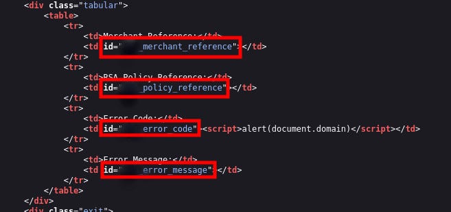 URL に「helloworld」を追加するなど、GET パラメータとしてテストすると、エラーメッセージ div に反映された入力が明らかになり、潜在的な XSS 脆弱性が明らかになり。