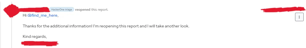 数日後、HackerOne Triage チームから追加情報を受け取り、 レビューのために Bug Bounty プログラム チームに送信されました 。