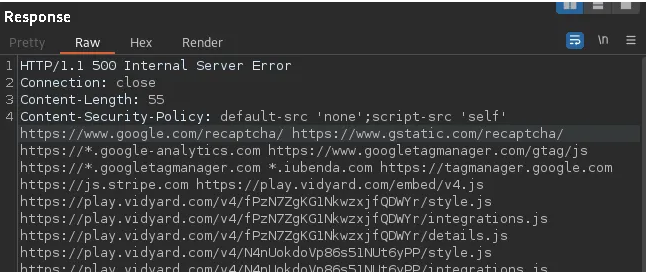 しかし、リージョンパラメータに一重引用符を付けると応答が変わり、500内部サーバーエラーであるサーバー応答が表示されます。以下の画像で見ることができます。