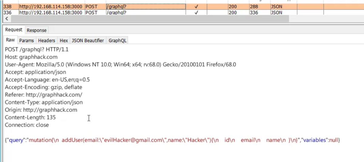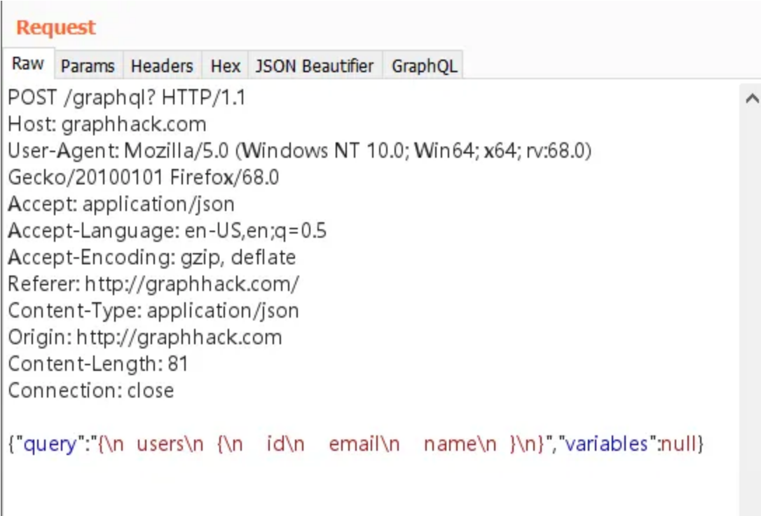 これを改善するには、JSON Beautifier のようなBurpプラグイン、あるいは GraphQL Raider として知られる GraphQL に特化したプラグインを使用できます。