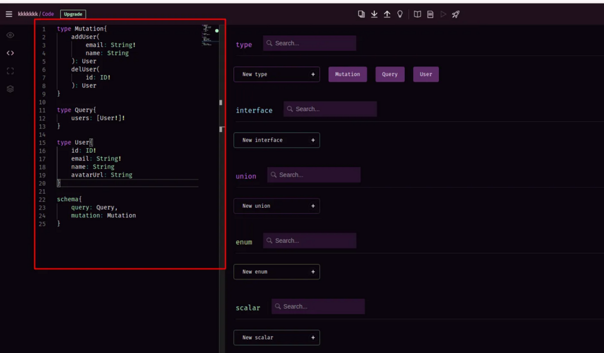 または、上部のアップロード ボタンをクリックして、graphql-playground を使用してダウンロードした schema.graphql sdl ファイルをアップロードすることもできます。