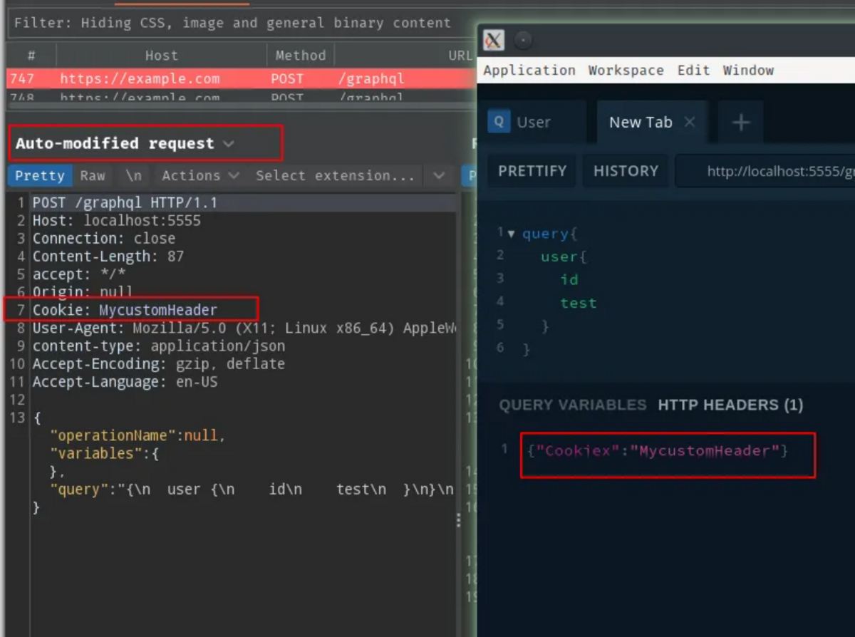 graphql を使用して Cookie を設定し、リクエストを監視するには、すべてのgraphql トラフィックを burpsuite からリダイレクトすることをお勧めします。