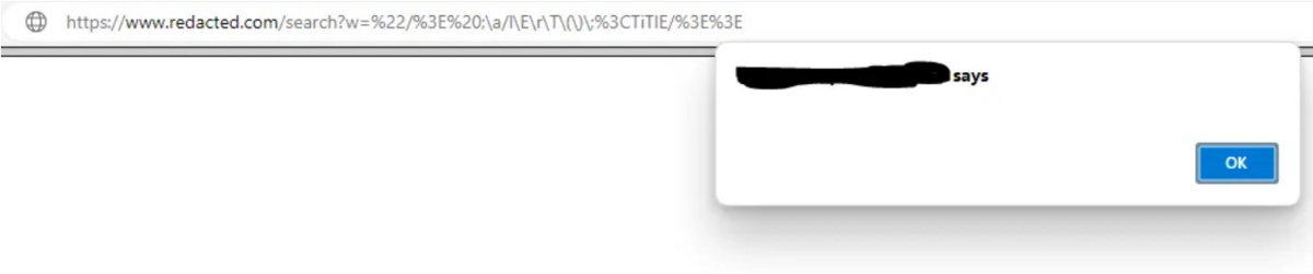 簡単ですよね? ここで、概念実証として最も基本的な「/><script>alert()</script> <title>」を挿入するだけで。